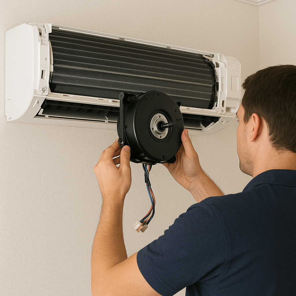 Replace faulty indoor or outdoor fan motors to restore proper airflow and cooling. Includes inspection, motor fitting, and testing. We use high-quality, compatible parts with warranty support. Ideal when AC makes unusual noises or airflow is weak.